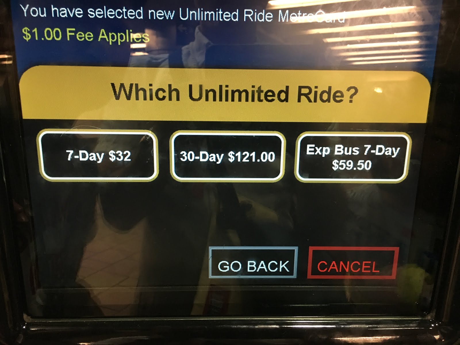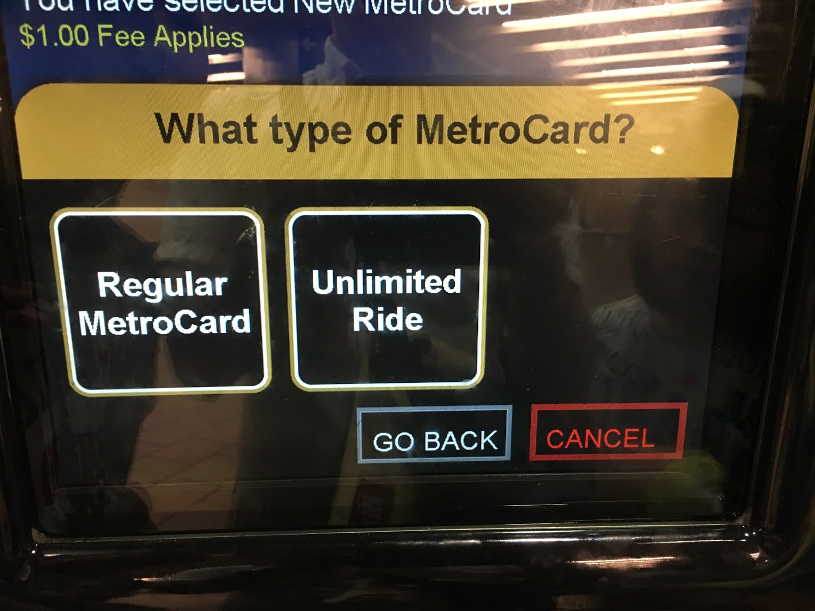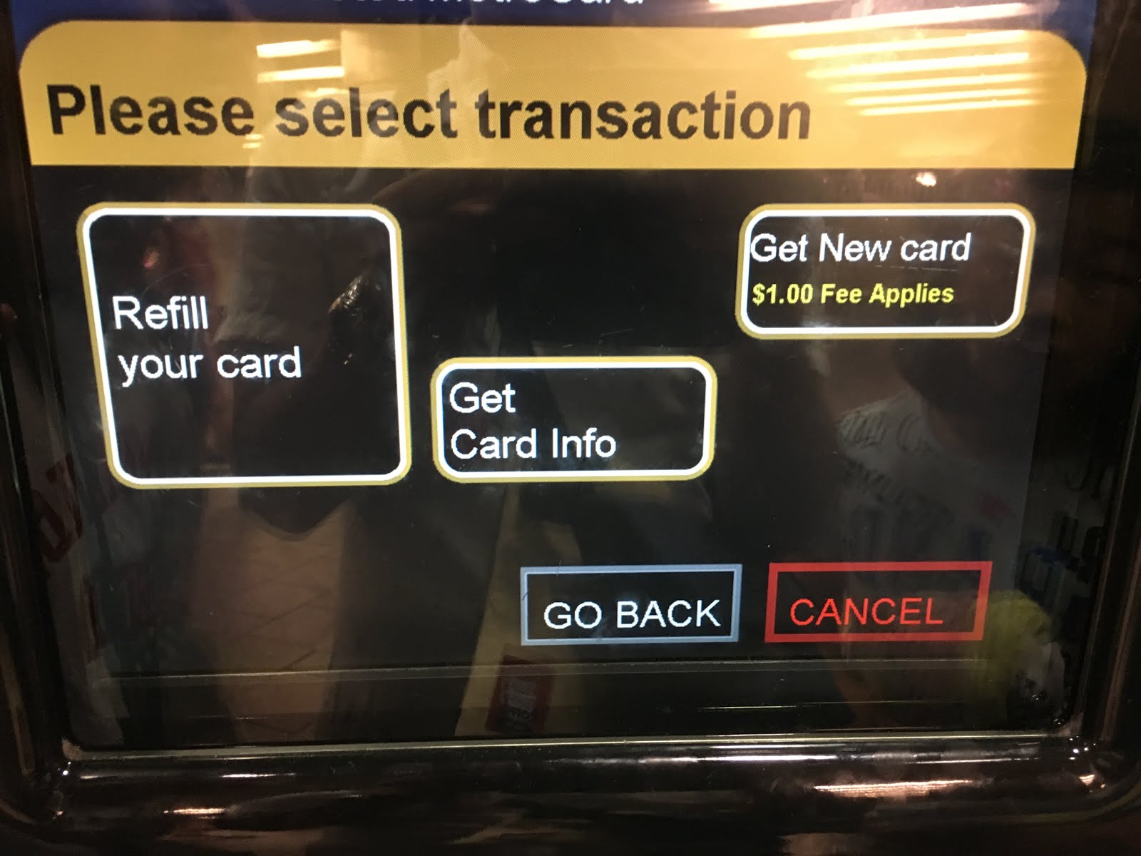 次は新しいカードを買うのか、再利用するかの選択。新しいカードは$1のカード代が必要です。