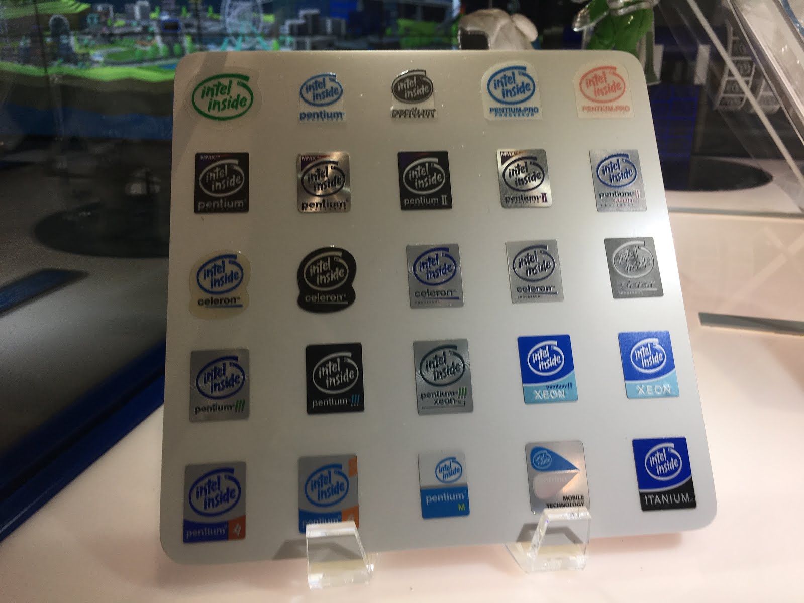 歴代の「Intel入ってる」ステッカーとかが展示されてます。アメリカのミュージアムって撮影OKのところが多いんですよね。日本はほとんど撮影禁止なのに。